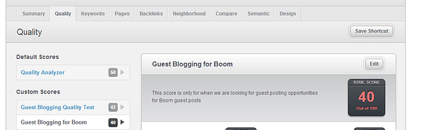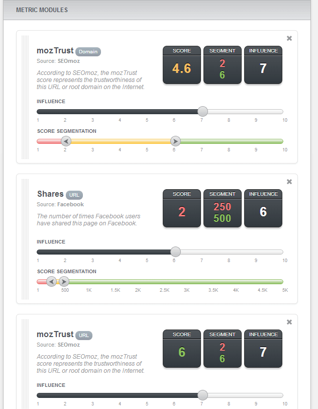 By choosing the metrics that matter to you, you are then able to set the metrics and have a central system that allows your team to judge the quality of a site – be that for guest blogging, link resource page evaluation, website reviews or proposals.