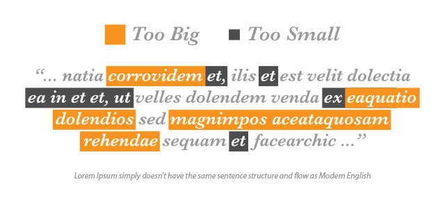 How? Well, firstly Lorem Ipsum is written in Latin, which is a dead language. What place does Latin have in modern graphic design and on the internet? Secondly the Lorem Ipsum excerpt consists of stupidly long words in quick succession and equally daft short ones, sometimes three or four in a row. This can look very awkward when used in smaller text boxes (granted, it can be useful for testing the limitations of a text box but it would be an unrealistic test based on an unrealistic sentence structure). Thirdly, in my experience I’ve found it can confuse clients who think you have gone mad and started writing gibberish. And so the list of reasons for change goes on.