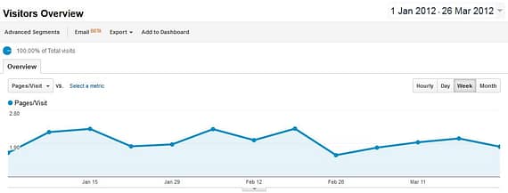 I can’t imagine there are too many sites that want fewer visitors, so it makes sense to keep an eye on your overall Visits and Unique Visitors over time. Give yourself a decent timespan, say two or three months at least, and see what that trend looks like – are you gaining visitors and if so, at what rate? Can you explain the growth – are there spikes around a press release, have you been undertaking SEO etc.?